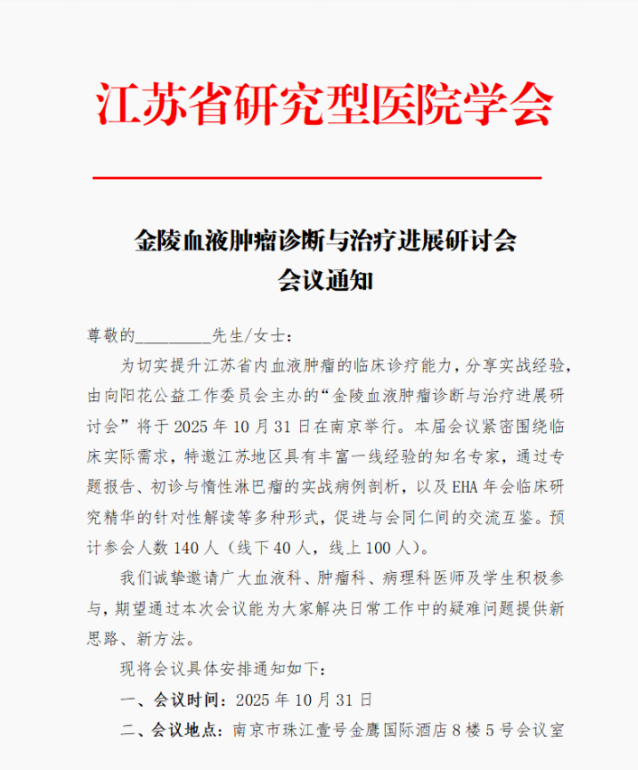 金陵血液肿瘤诊断与治疗进展研讨会会议通知