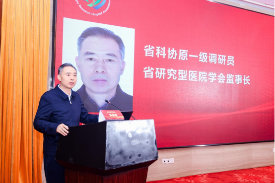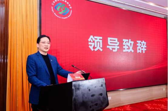 南京鼓楼医院党委委员、副院长周科峰发表致辞。他首先对莅临会议的各位专家、学者表示热烈的欢迎和衷心的感谢,并对浆细胞疾病专业委员会换届大会的顺利召开表示诚挚祝贺。周院长强调了江苏省研究型医院学会作为我省医学学术交流与科研转化的核心平台,始终以推动临床与科研深度融合为目标,在搭建协作桥梁、促进资源共享、加速成果落地等方面发挥着不可替代的作用,并提出浆细胞疾病专业委员会需要继续发挥桥梁纽带作用,整合省内优势医疗资源,深化产学研协同,加速科研成果向临床转化,惠及患者,为提升江苏乃至全国浆细胞疾病诊疗水平贡献智慧和力量。